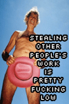 I try to give them the benefit of the doubt; think, okay, maybe they didn't realize you can't cut and paste someone else's source code into your own stupid profile/blog/site. But then they knew enough to change all of the <img> tags, didn't they? Quite.