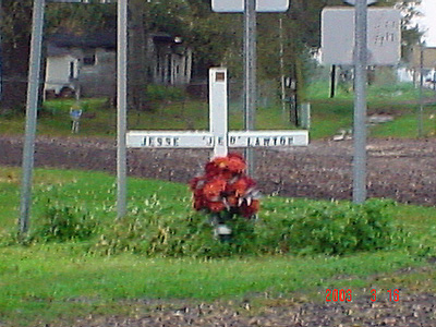 Jed Landry was killed along the Rosedale Road, also known as Highway 76, just outside the city of Port Allen. His marker rests next to Lobdell Highway (Highway 415) which connects to Airline Highway (Highway 190).